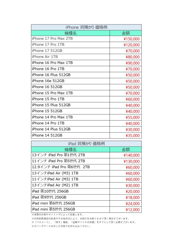 iPhone・iPad 質預かり強化中!(2/21更新)